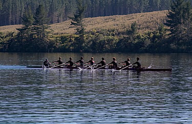 Based on the shores of Lake Maraetai, we have access to the most sheltered water of its size in the country. The 2.5 km stretch of water with no towing allowed when rowers are on the water.